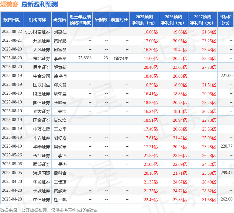 盈利掂量及投资评级:磋议到行业竞争加重,公司市集拓展及利润开释经由或有所放缓,咱们下调2025-2027年收入至27.23亿元/31.26亿元/35.48亿元(前值34.52亿元/39.63亿元/44.98亿元)。归母净利润为17.68亿元/19.52亿元/22.46亿元(前值21.35亿元/24.67亿元/28.40亿元)。对应公司2025年8月19日股价2025-2027年PE区别为31.0/28.1/24.4倍。参考可比公司昊海生科、华熙生物、锦波生物,咱们看好公司主业的肃肃增长和络续参加翻新产物研发,保管“买入”评级。